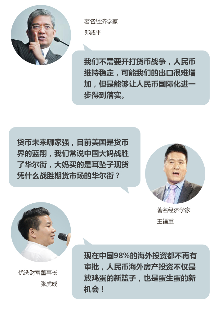 最火财经类节目【财经郎眼】在2014113期中聊到了货币战争的话题,优选财富董事长张虎成作为特邀嘉宾,与经济学家郎咸平教授、王福重教授畅聊人民币升值后炙手可热的新方向。